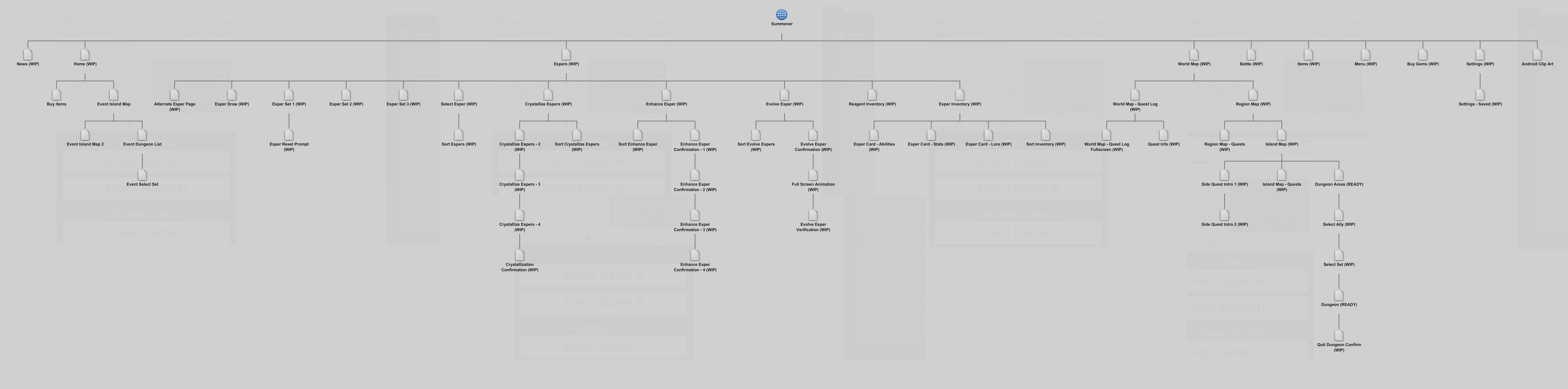 I generated wireframes very early in the project to create a heirarchy of the entire game. I accomplished this using a combination of Photoshop and Mockflow WireframePro. I made the wireframes interactive so that team members could test out the user flow of the game for themselves.